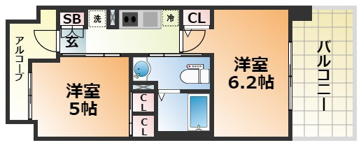 洋室 6.2帖/洋室 5.0帖 - 向き